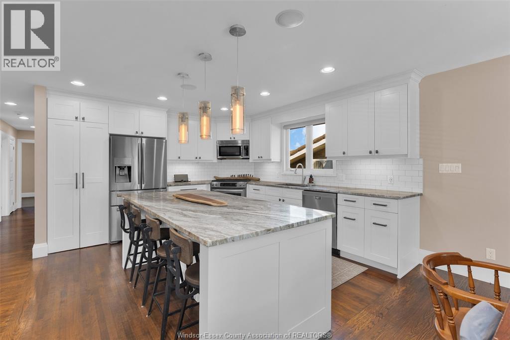Discover this completely transformed family home in the heart of Tecumseh, directly across from Piqua Park. Designed with both style and comfort in mind, the main level offers an airy, open-concept layout highlighted by a striking oak staircase and a chef’s kitchen with custom cabinetry, an oversized island, granite surfaces, and a walk-in pantry. Thoughtful built-ins are featured throughout, including shelving in the living spaces and wardrobes in every bedroom. The lower level expands your living options with a spacious family room and gas fireplace, an additional bedroom, full bath, and a well-appointed laundry area. Outside, the backyard retreat is framed by soaring 30-foot cedars for total privacy, and a brand new 20x35 concrete patio makes entertaining effortless. (id:4555)