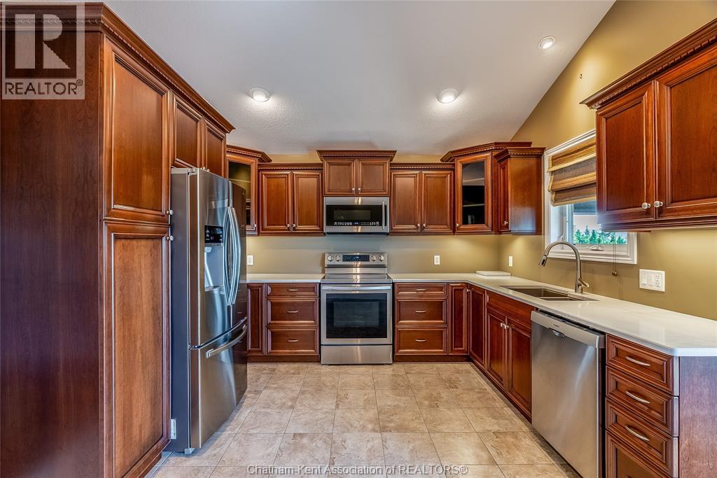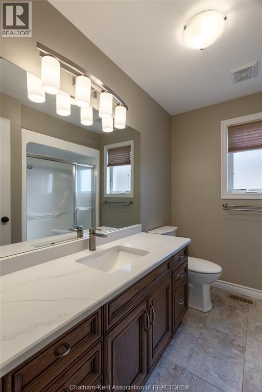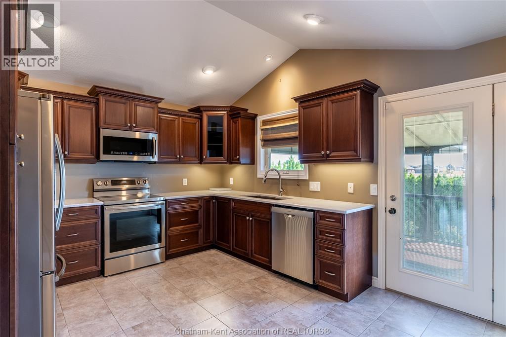 Welcome home to this bright and inviting raised ranch in one of Chatham’s most family-friendly neighbourhoods. Built in 2007, this 2+1 bedroom brick home checks all the boxes for comfortable, easy living. Step inside to find high ceilings and an open-concept living/dining space with high ceilings giving a light and airy feel. The large eat-in kitchen is perfect for family dinners or weekend brunch. And it has a walkout to a peaceful covered deck, the ideal spot for your morning coffee or an evening glass of wine. The primary suite offers a private retreat with its own full bath and walk-in closet. A second full bathroom and bedroom round out the main floor. Downstairs, the finished lower level adds even more living space with a huge family room featuring a cozy gas fireplace, a bright third bedroom, another full bathroom, and a large laundry room with tons of storage. You’ll love the double attached garage, the lovely matching shed out back, and the low-maintenance landscaping that just needs a little spring TLC to shine again. Located near the brand new St. Teresa of Calcutta school and The Chatham Christian School, with plenty of parks and walking trails nearby — this is a wonderful place to raise a family or settle into a quieter pace of life. (id:4555)