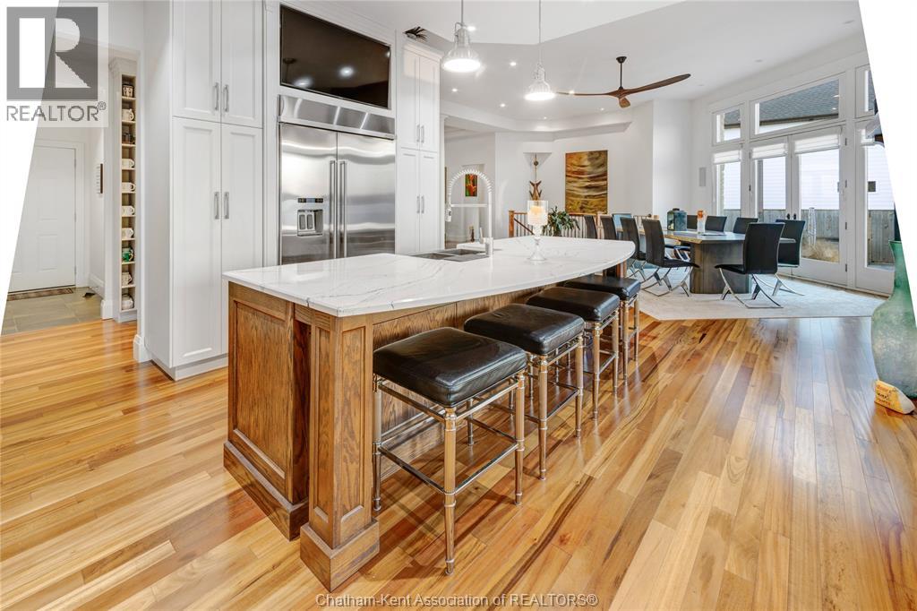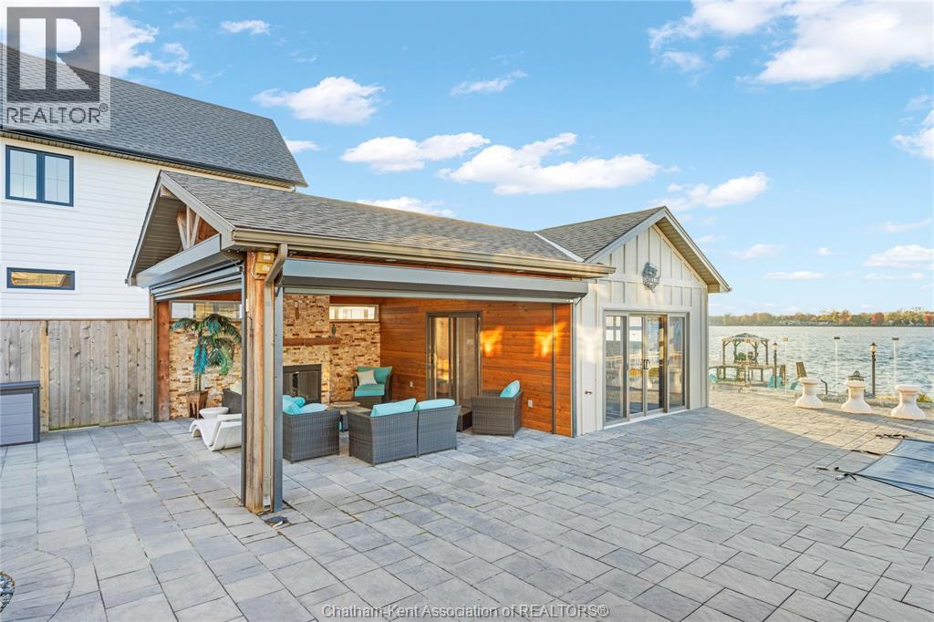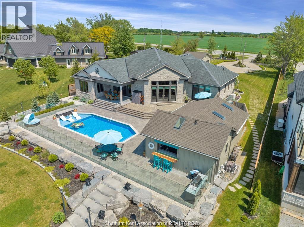 Experience true luxury waterfront living with this exceptional 3+2 bedroom, 3.5-bath custom-built home featuring soaring ceilings, Brazilian hardwood floors, and floor-to-ceiling windows that flood the space with natural light. The gourmet kitchen showcases custom cabinetry, an impressive butler’s pantry, and a great layout that flow to the elegant living and dining areas. The primary suite offers a private retreat with 2 walk-in closets and custom finishes , heated ensuite floors, a tiled shower, soaker tub, and double vanity. The lower level is designed for comfort and entertainment with in-floor heating, a spacious rec room with and impressive wet bar, gym, tanning bed, sauna, abundant storage space, and access to the heated attached garage. Step outside to your private resort-style oasis overlooking the waterfront, complete with a covered patio and cabana featuring an outdoor kitchen, 2pc bath, cozy gas fireplace, and hurricane shutters. Enjoy automatic screens on the cabana, back patio, and front porch for year-round comfort. The saltwater heated pool with tanning ledge, waterfall, and glass fencing offers a perfect blend of elegance and relaxation. A 90’ dock with composite decking and a 12,500lb boat lift provides the ultimate waterfront experience, while professional landscaping, full lighting system, heated garages, generator, greenhouse and powered security gates ensure complete privacy, quality, and luxury in every detail. (id:4555)