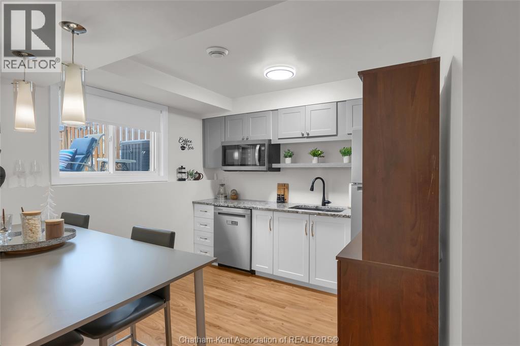 Elegantly designed and impeccably maintained, this 3 year old semi-detached home offers refined, modern living with exceptional versatility and income potential. The main level showcases open concept living with a bright kitchen with granite countertops, ample cabinetry and seating at the peninsula making it the perfect space for both everyday living and entertaining. Quality craftsmanship and attention to detail are evident throughout. The upper level offers 2 inviting bedrooms, a beautifully appointed bathroom and hardwood flooring. The opportunities are endless in the warm and inviting, fully finished lower level that has been thoughtfully designed with both comfort and functionality in mind. A grade entrance, along with insulated walls and ceilings, offers the perfect balance of privacy and additional living space. This charming area feels like it's own retreat and is ideal for multi-generational living, a private guest suite, or income potential. The kitchenette has a service window making entertaining outdoors a breeze, along with a BBQ gas line for added convenience. Prefer a second stove? The dishwasher could easily be converted to a stove as an electrical outlet is already in place. Finished with durable luxury vinyl plank flooring, plus an additional bedroom and full bathroom with a spa-like atmosphere. This space is the perfect blend of comfort and elegance. Stepping outside you'll enjoy the fully fenced 135' deep yard where privacy and outdoor living come together beautifully. The spacious patio makes the perfect place for both entertaining and relaxing. This home is in an ideal location within walking distance to all amenities including parks, schools and shopping. Being only minutes to the 401 makes for an easy commute to both Windsor and Chatham. Whether you are entering the market, looking to downsize or somewhere in between, this home is sure to please! (id:4555)