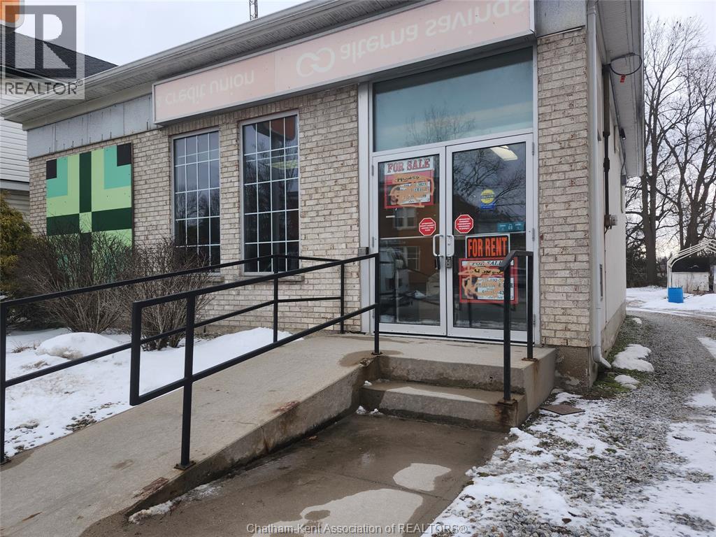 Prime Commercial Opportunity in Wardsville Freestanding commercial building located in the heart of Wardsville, Ontario, in Southwest Middlesex. Conveniently situated approximately 35 minutes from both London and Chatham, offering excellent regional accessibility. 1789 Longwoods Road features approximately 1,291 sq. ft. of space on a 0.184-acre lot. The building was previously operated as a financial institution and offers a functional layout including a vestibule entrance, reception/waiting area, three private offices (one with direct access from the reception/counter area), washroom, kitchenette, and secure room. The property includes a ramped entrance for accessibility. Rear on-site parking is available and accessed via a shared driveway along the south side of the building. The parking area was regraded approximately two years ago (gravel surface). Zoned C1 (Central Core), permitting a wide range of commercial uses including retail, office, medical/clinic, personal service, restaurant, fitness facility, and place of worship. The flexible zoning supports both owner-occupier and investment opportunities. Potential for future residential rezoning subject to municipal approval. Buyers to complete their own due diligence regarding permitted uses and zoning. (id:4555)