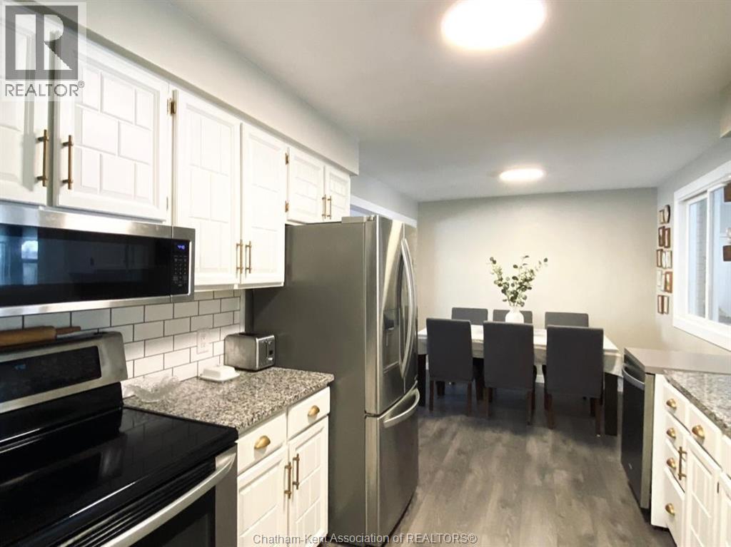 Charming 5-Bedroom Side-Split on a Quiet Crescent – Private Lot Backing onto Fields & River Access! Welcome to 622 Sandra Crescent in family-friendly Wallaceburg – a peaceful, quiet neighborhood on a serene crescent with just the right mix of convenience and tranquility. This rare 5-bedroom, 1.5-bath side-split sits on a spacious lot with a generous front yard and expansive backyard that backs directly onto open farm fields for ultimate privacy. Enjoy stunning sunset views from your paver patio, or step out to nearby green space leading to Otter Creek – perfect for fishing, canoeing, kayaking, or peaceful nature walks. Inside, the home is bright and welcoming with abundant natural light pouring through large windows throughout. The main floor features a front living room with picturesque views over the quiet street, flowing seamlessly into a modern kitchen/dining area boasting granite countertops and sleek stainless steel appliances. A standout feature is the large 12x24 four-season sunroom (used year-round as a rec room/mudroom), flooded with light and offering beautiful backyard and field vistas – ideal for relaxing, entertaining, or family gatherings. Upstairs you’ll find three good-sized bedrooms and a full bathroom. Downstairs offers two additional bedrooms, a convenient 2-piece bath, plus a massive finished concrete crawlspace (approx. 24’x20’) under the main floor for incredible storage. Recent updates ensure peace of mind: roof shingles (2018), forced-air gas furnace and central air (2022), on-demand hot water heater (2022 – both systems under warranty), 100-amp electrical panel, and a smart Ecobee thermostat for energy efficiency. Outdoor perks include a shaded front deck (perfect for morning coffee under the white poplar tree), a covered carport for one vehicle plus a storage shed for tools/lawn equipment, and that private, low-maintenance backyard oasis. Just minutes from top local schools, Sydenham District. Don't delay, book you showing today! (id:4555)
